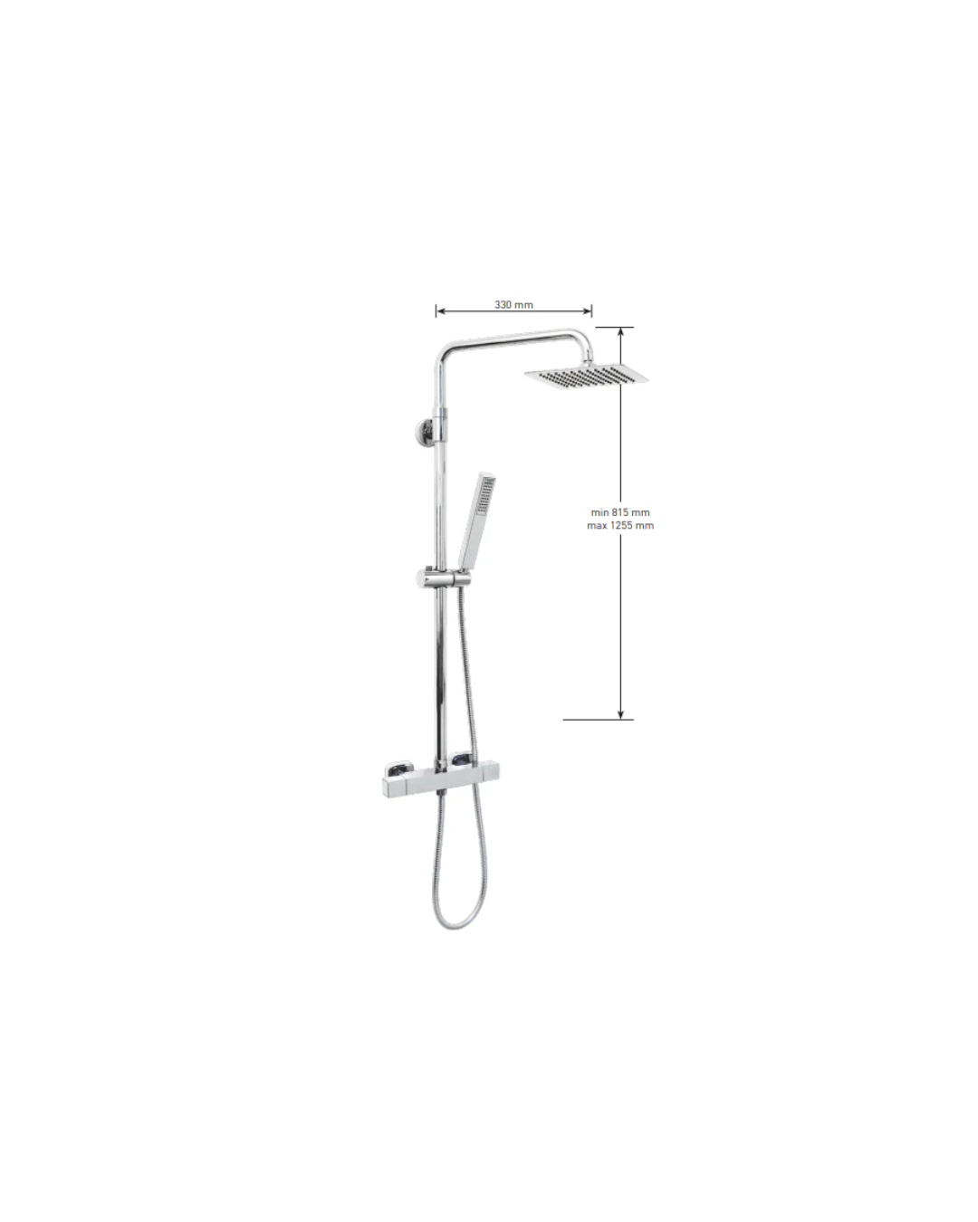 Combinando eleganza e tecnologia per un’esperienza doccia perfetta e sicura la colonna cilindrica è abbinata a un soffione quadrato disponibile in tre dimensioni (200, 250 o 300 mm), offrendo una soluzione versatile per ogni bagno moderno. Caratteristiche tecniche