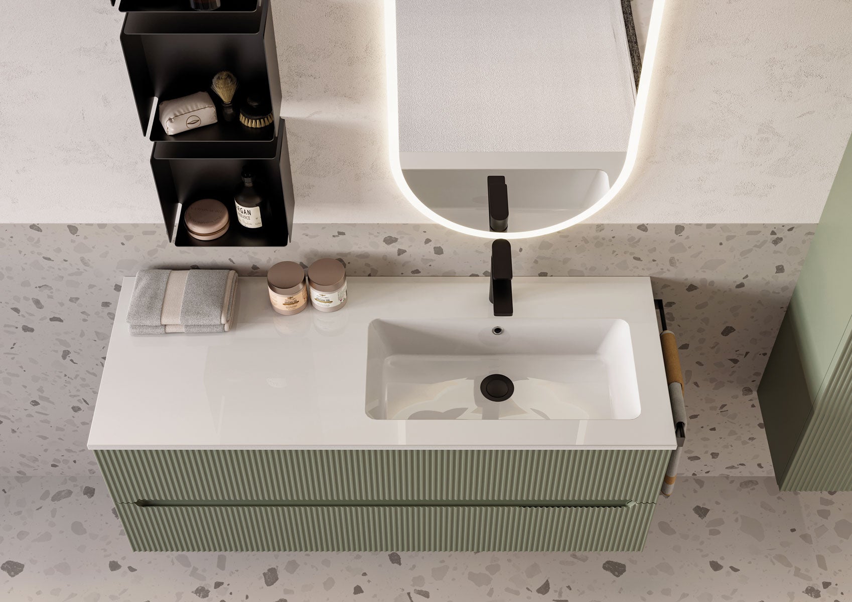 Il set bagno MESH combina funzionalità e design contemporaneo in una composizione elegante e curata nei dettagli. Ideale per ambienti moderni, unisce estetica raffinata e massima praticità, offrendo una soluzione completa e ben strutturata.